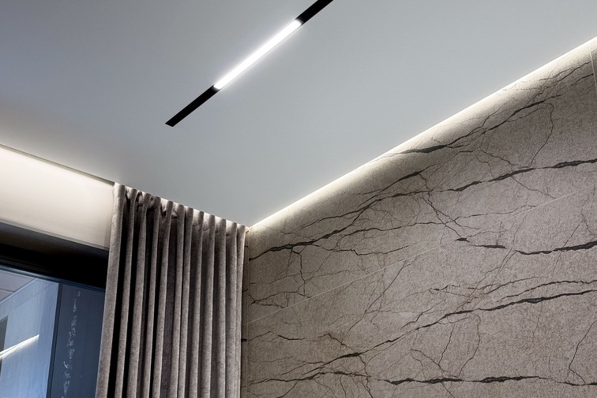 Натяжная конструкция опустится минимум на ширину профиля, а это 3-5 см в зависимости от его типа. Если нужна маскировка коммуникаций, датчиков или каких-либо систем, опуск может быть больше.